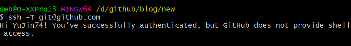 在git bush中输入ssh -T git@github.com,如果像下图这样出现了你的用户名就成功了